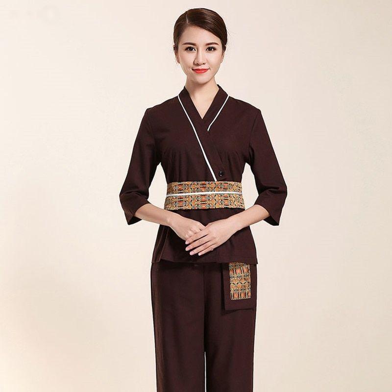 Mẫu đồng phục spa đẹp với áo Kimono cách điệu