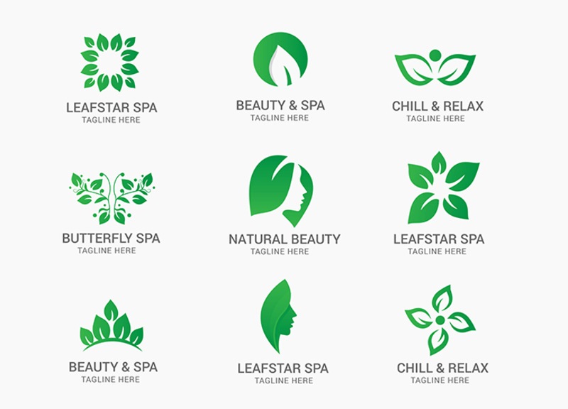 - Hình lá cây, thiên nhiên: Dùng trong spa organic hoặc sản phẩm thiên nhiên