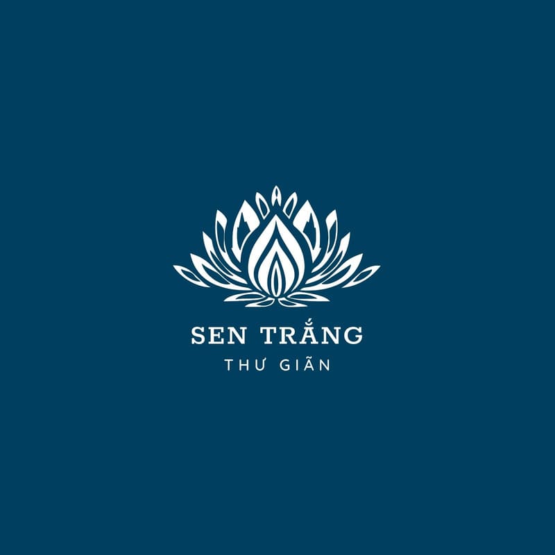 Logo spa hình cánh hoa sen, màu trắng – xanh
