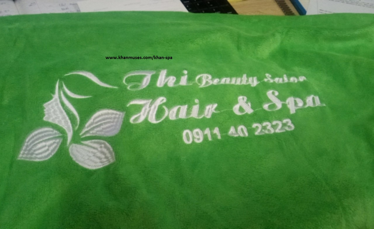Liên hệ: 0986 217 721 chuyên mảng logo, thêu khăn Spa.