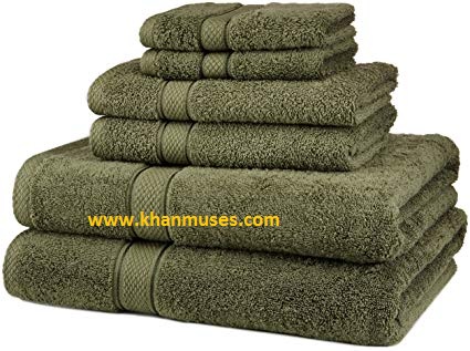 Bộ 6 khăn tắm cotton cao cấp màu xanh rêu gồm:
