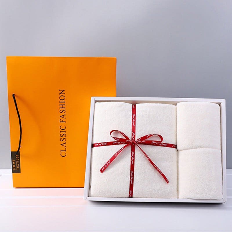 Khăn sẽ được đóng hộp chỉn chu, phối cùng xà phòng, thiệp hoặc túi vải cao cấp.