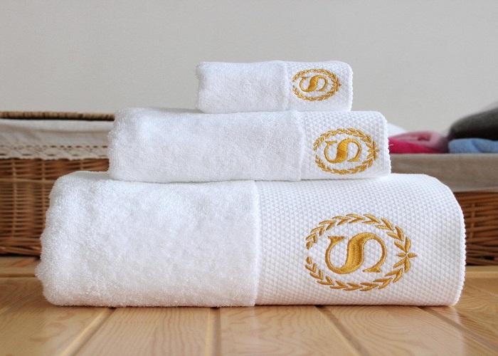 - Khăn Khách sạn cao cấp yêu cầu Thêu Logo của khách sạn, tùy theo Nhu cầu và tiêu chí chọn khăn của từng Khách sạn là thêo Logo của khách sạn với Ưu điểm là thể hiện hết được màu sắc của Logo lên khăn và số lượng tối thiểu yêu cầu cho 1 Đơn hàng sản xuất chỉ cần từ 10 cái trở lên. Yêu cầu về loại sợi dùng để dệt khăn: Phải là loại sợi cao cấp se đôi CD 32/2 hoặc CD 20/2