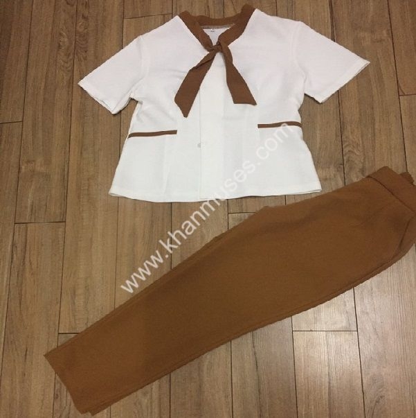 Mô tả sản phẩm: Bộ đồng phục Spa màu trắng, quần nâu