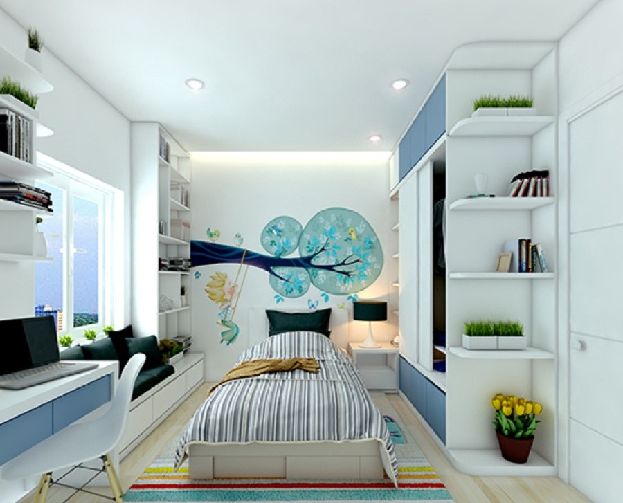 Không nhất thiết phải kê hết đồ đạc trong phòng ngủ, bởi chúng tạo cảm giác chật hẹp, khó chịu. Vì vậy, bạn chỉ nên bố trí những thứ cần thiết và cơ bản: giường ngủ, tủ quần áo, đèn ngủ và một vài kệ trang trí nhỏ. Hãy loại bỏ những thứ không cần thiết để căn phòng trở nên thoáng mát và sạch sẽ hơn.