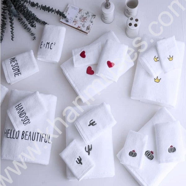 Bộ 3 khăn quà tặng màu trắng thêu logo
