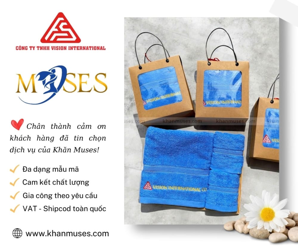 Khăn Bông Nữ Thần MUSES vô cùng vinh dự khi được đồng hành cùng Công ty TNHH Vision International trong dự án sản xuất quà tặng doanh nghiệp lần này. Những chiếc khăn thành phẩm không chỉ là món quà thiết thực mà còn là lời khẳng định về sự chu đáo và đẳng cấp của thương hiệu Vision International gửi gắm đến khách hàng và nhân viên.