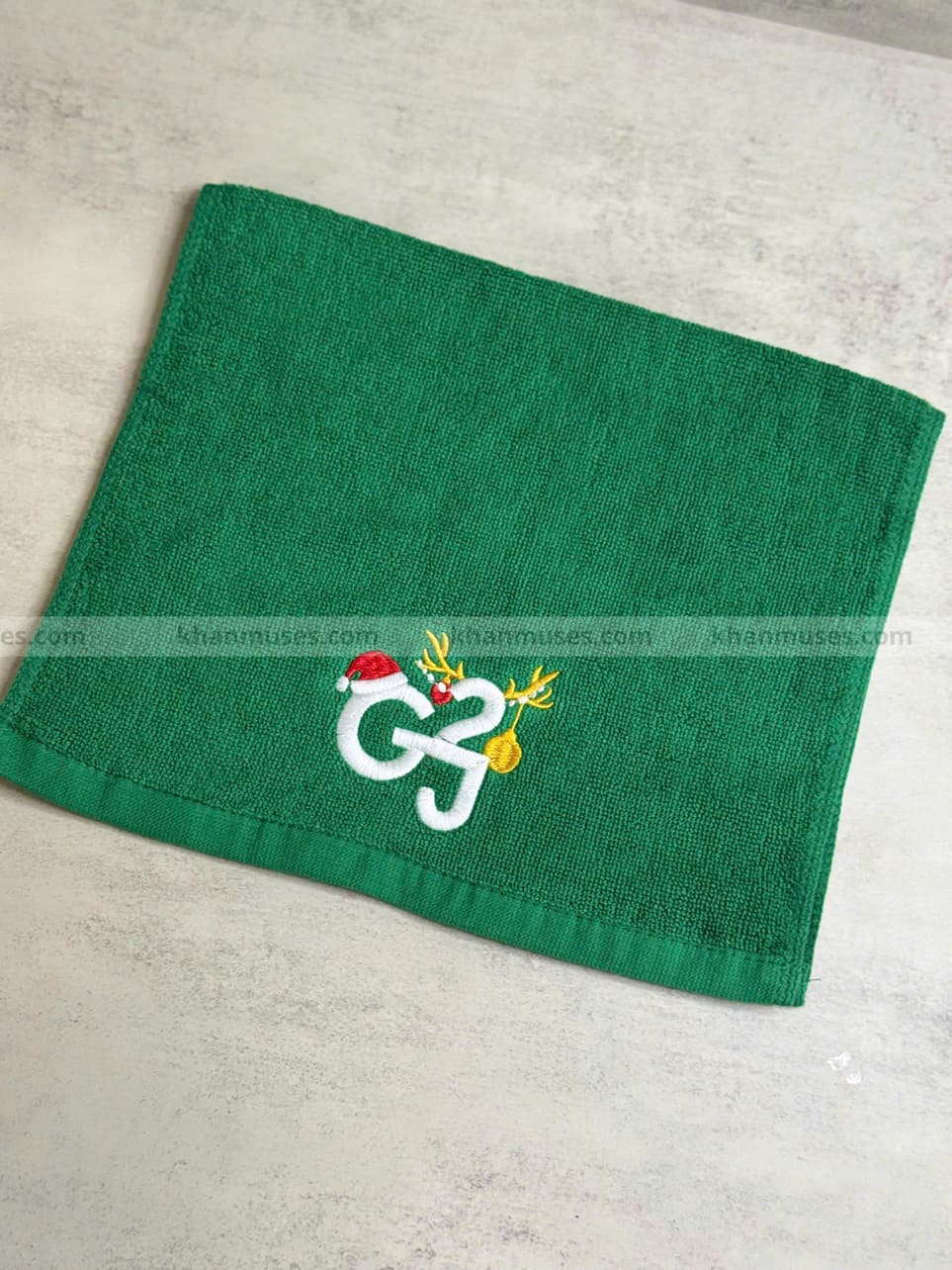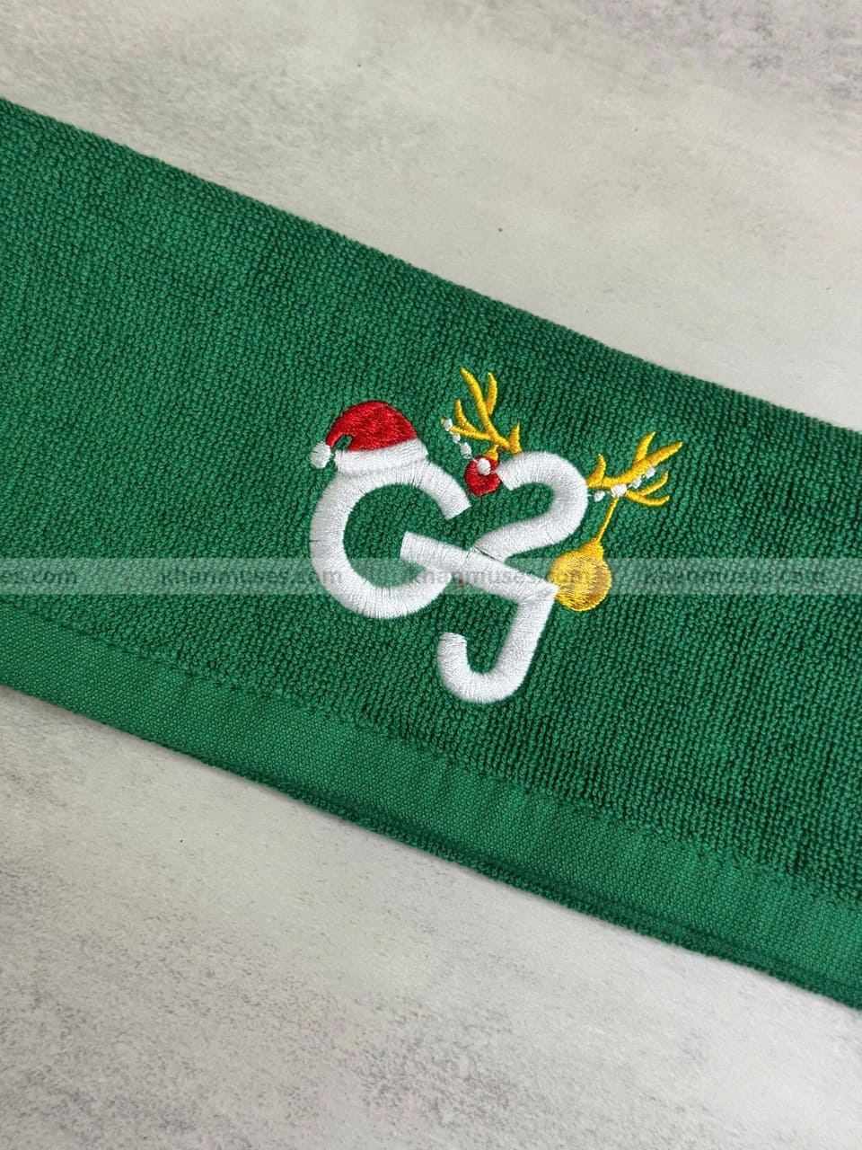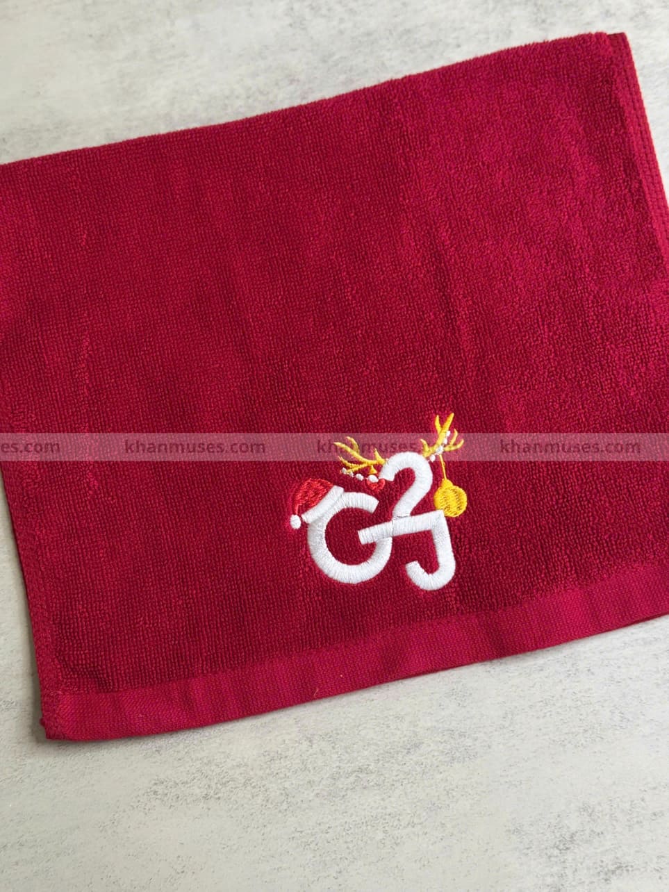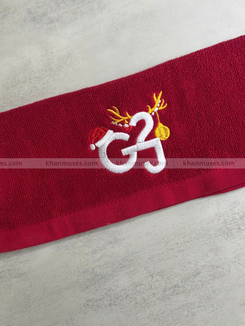 Hình ảnh thực tế khăn cotton thêu logo giáng sinh G2J