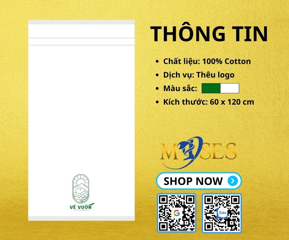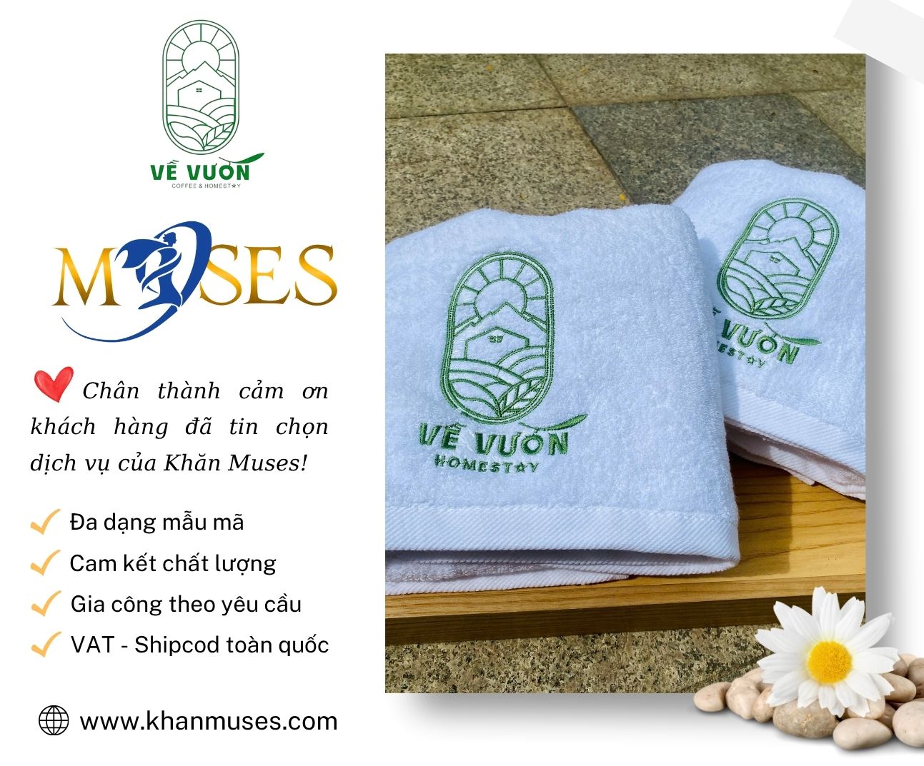 Chân thành cảm ơn Về Vườn Homestay đã lựa chọn Khăn Muses thiết kế và sản xuất khăn bông dùng trong dịch vụ lưu trú của mình. Thông tin sản phẩm như sau: