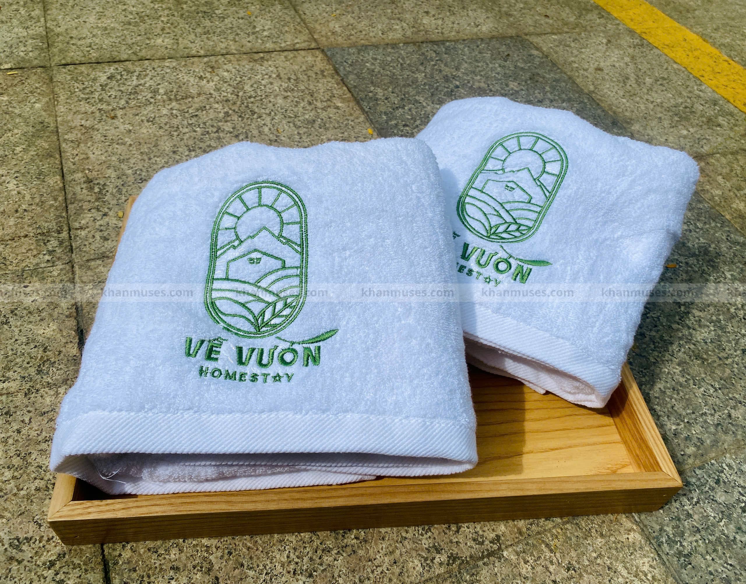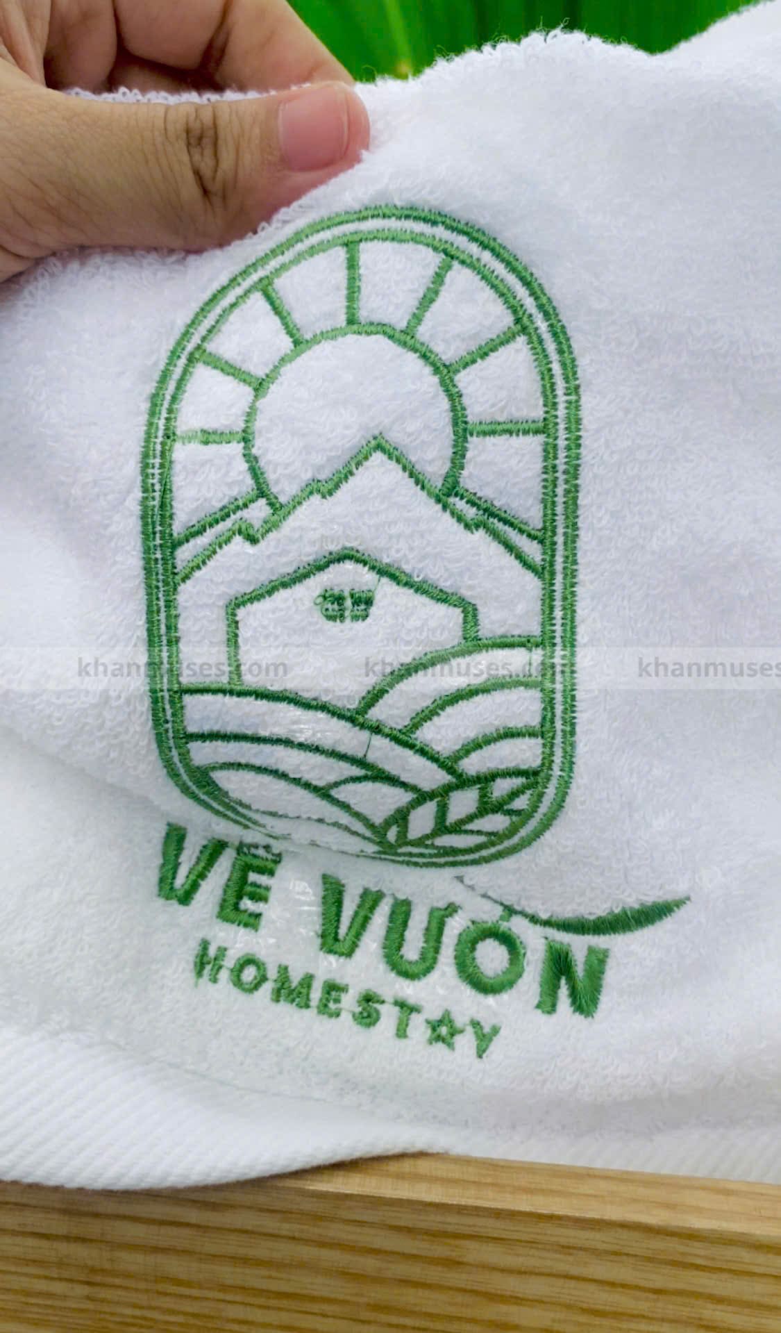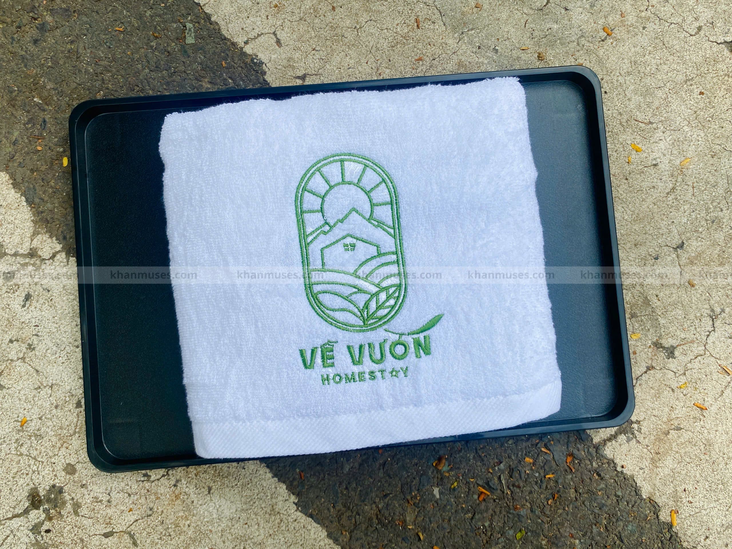Khăn cotton thêu logo Về Vườn Homestay (Phan Rang)