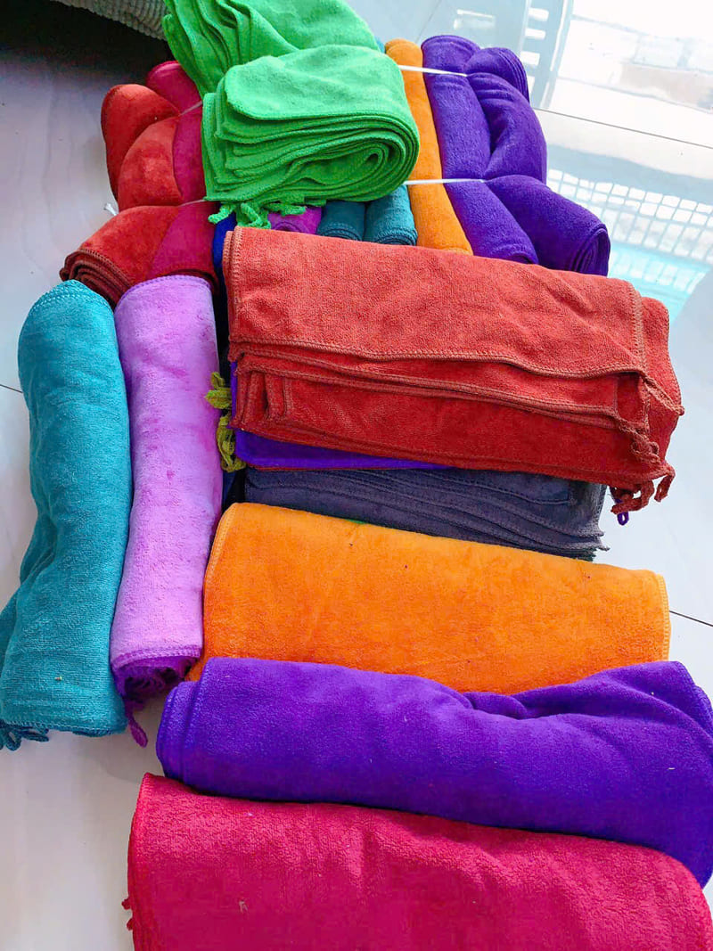Khăn cần phải dày dặn, kích thước lớn và ưu tiên chất liệu microfiber. Bạn là thể mua loại khăn nguyên hoặc khăn nối để tiết kiệm chi phí hơn. Phù hợp cho: