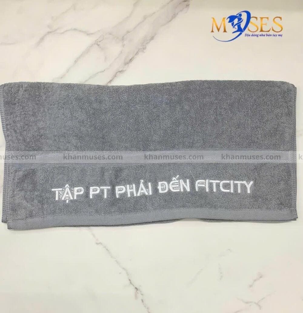 khăn cotton tập gym thêu logo,