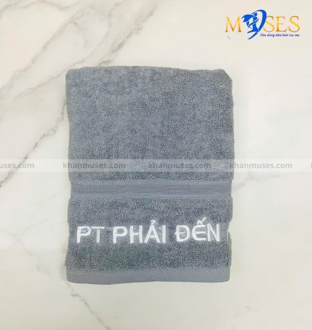 khăn cotton xám thêu logo,