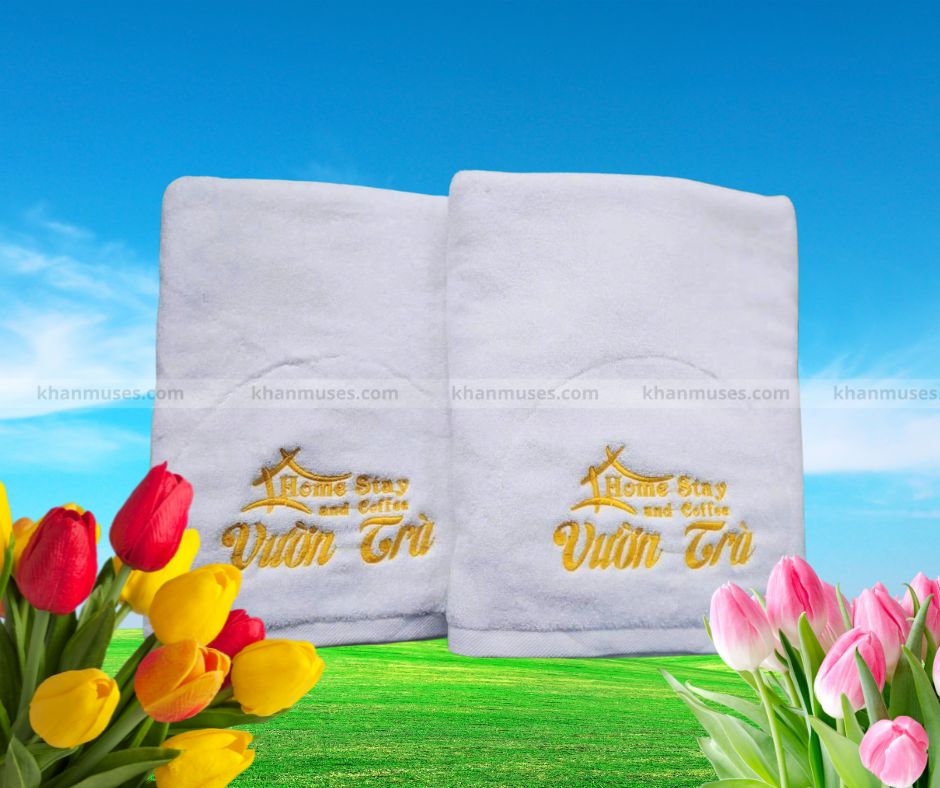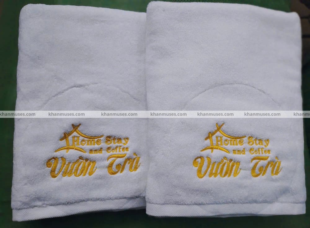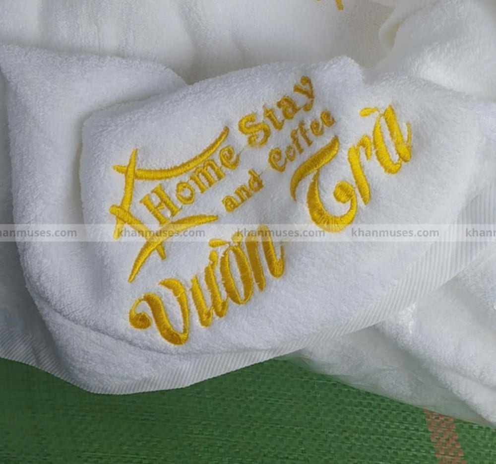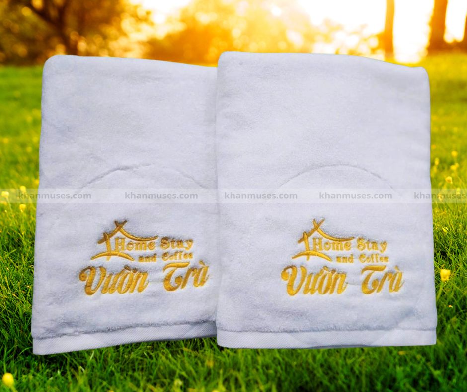 Khăn Khách Sạn - Khăn Cotton Thêu Logo - Vườn Trà Homestay
