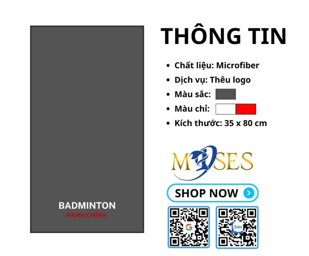 Khăn microfiber thêu logo - Khăn thể thao Badminton Hành Chính