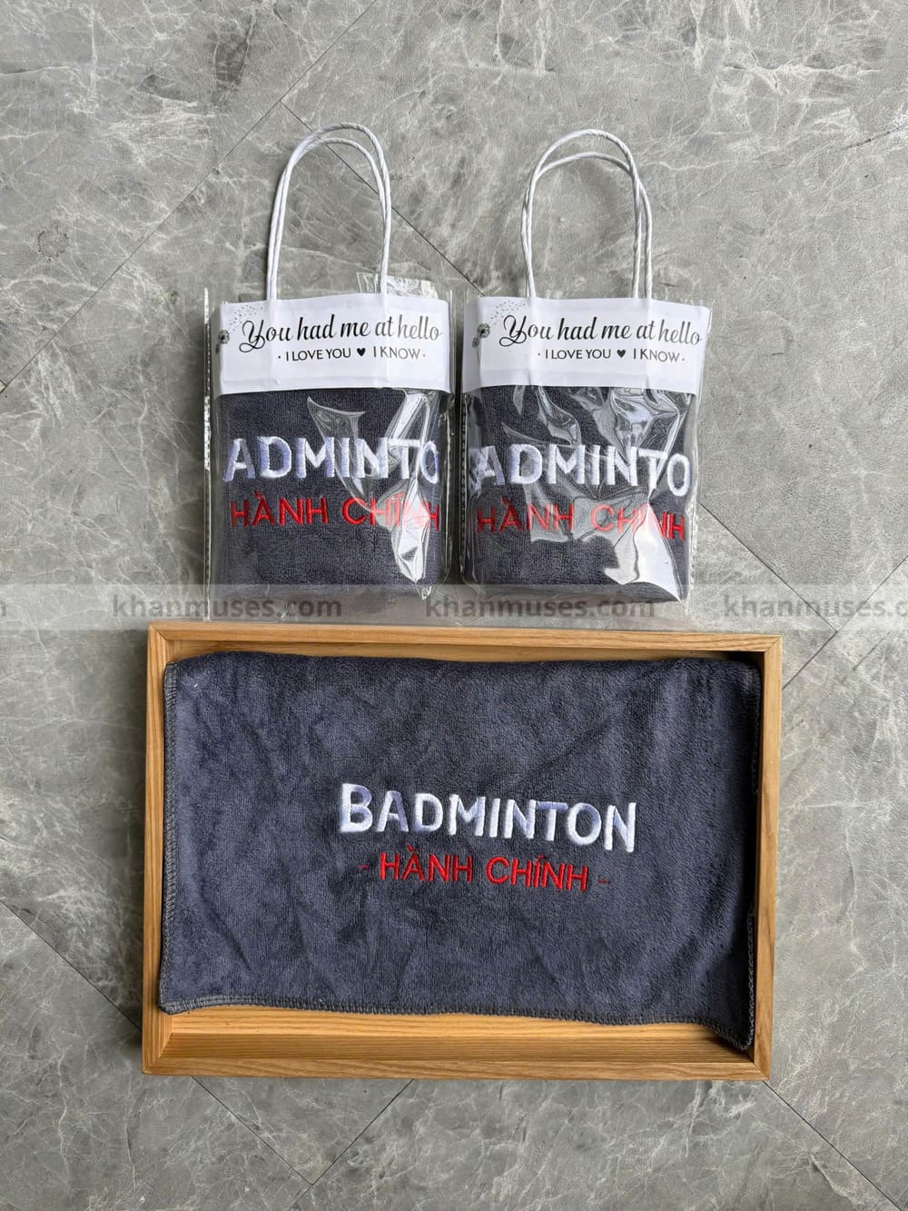 Ảnh thực tế khăn microfiber thêu logo Badminton Hành Chính
