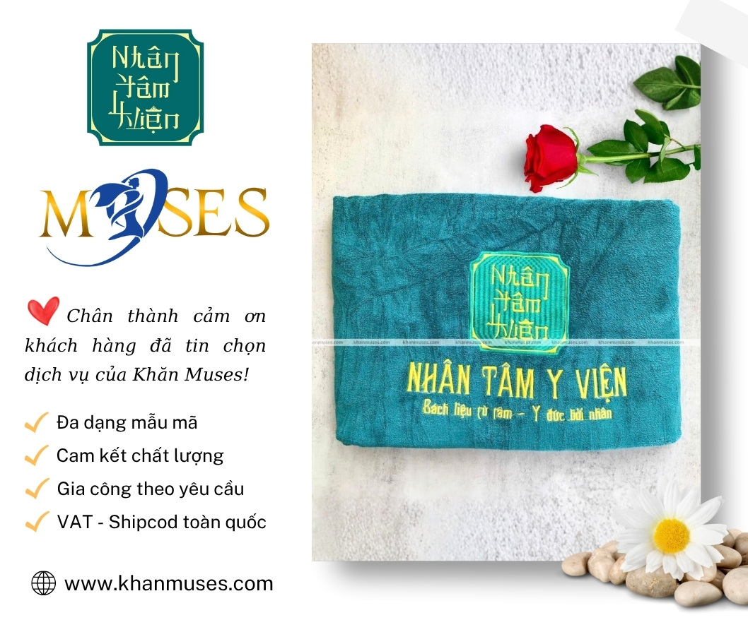 Chân thành cảm ơn Nhân Tâm Y Viện đã lựa chọn Khăn Muses thiết kế và sản xuất khăn thêu logo cho đợt set-up lần này. Thông tin sản phẩm như sau: