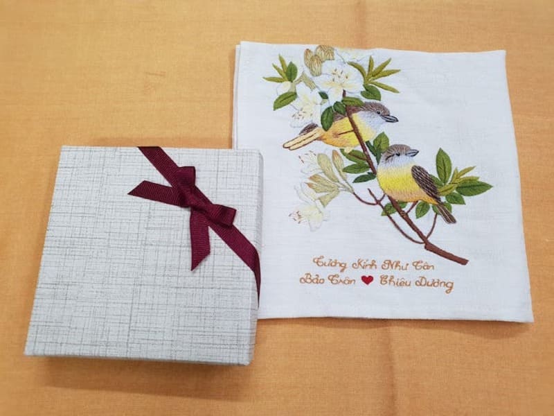 Sản phẩm gọn nhẹ, tinh tế, phù hợp tặng đồng nghiệp, bạn bè, người thân nữ. Đặc biệt, với lời chúc được thêu trên khăn sẽ giúp người nhận cảm nhận được tình cảm của bạn dành cho họ.