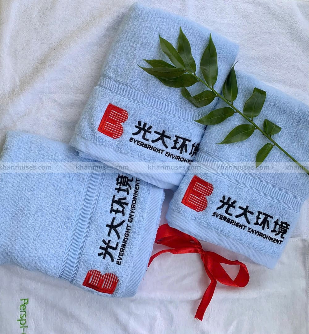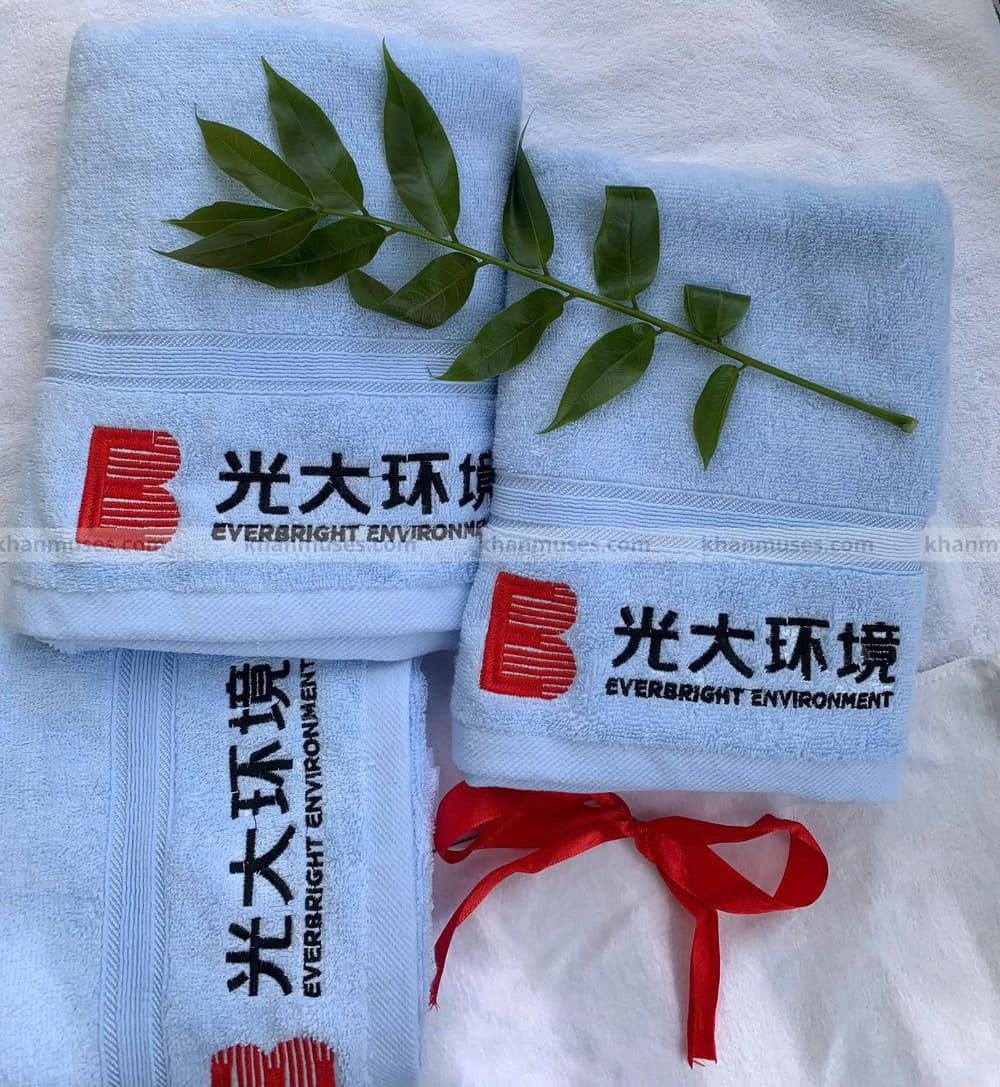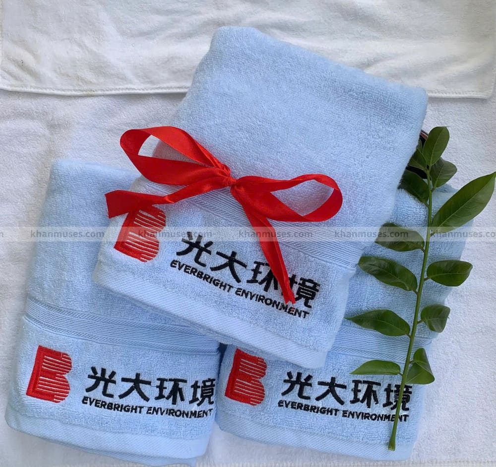 SẢN PHẨM KHĂN QUÀ TẶNG - KHĂN COTTON THÊU LOGO - EVERBRIGHT ENVIROMENT