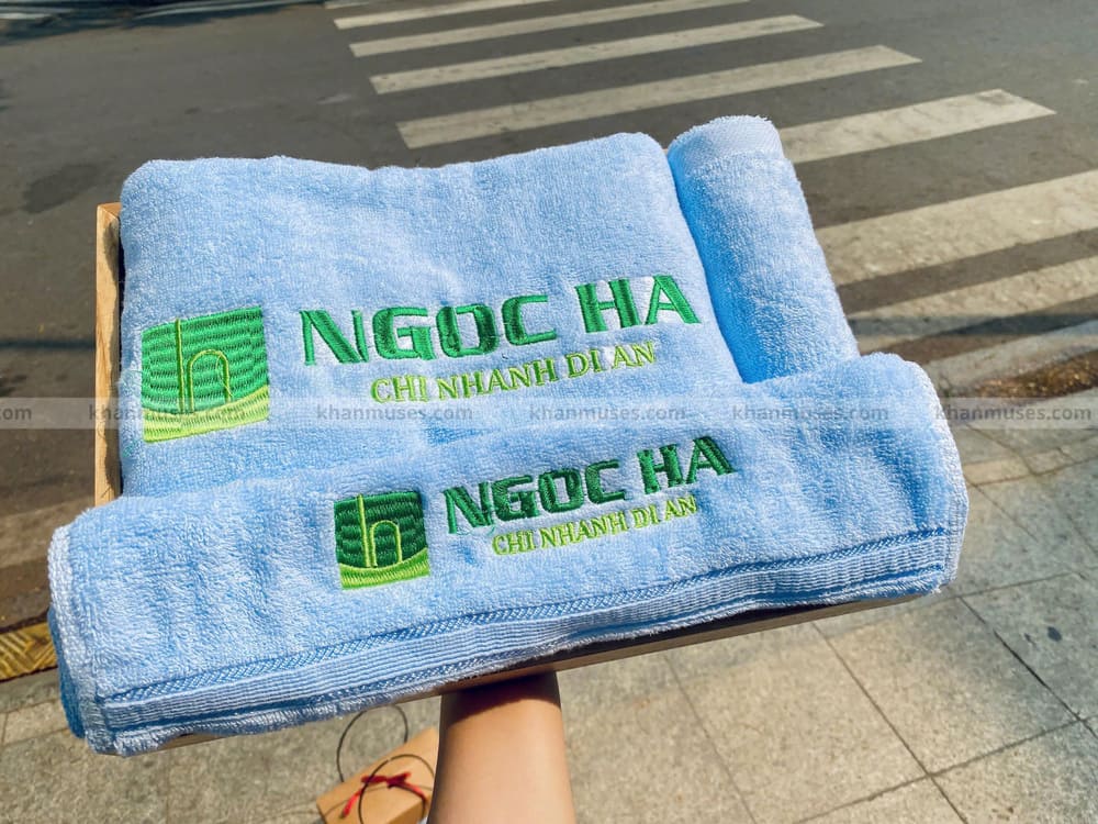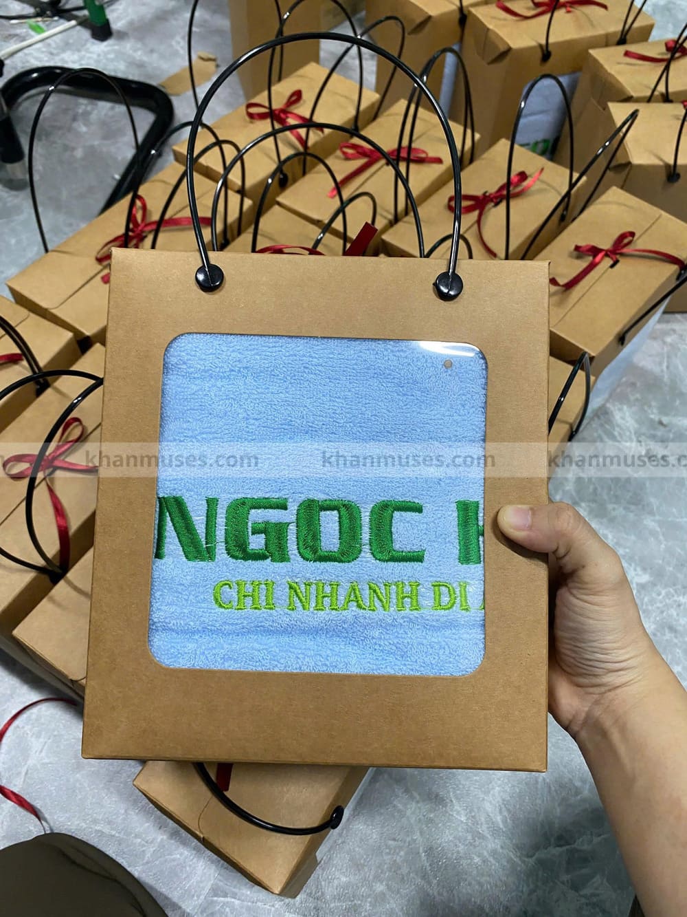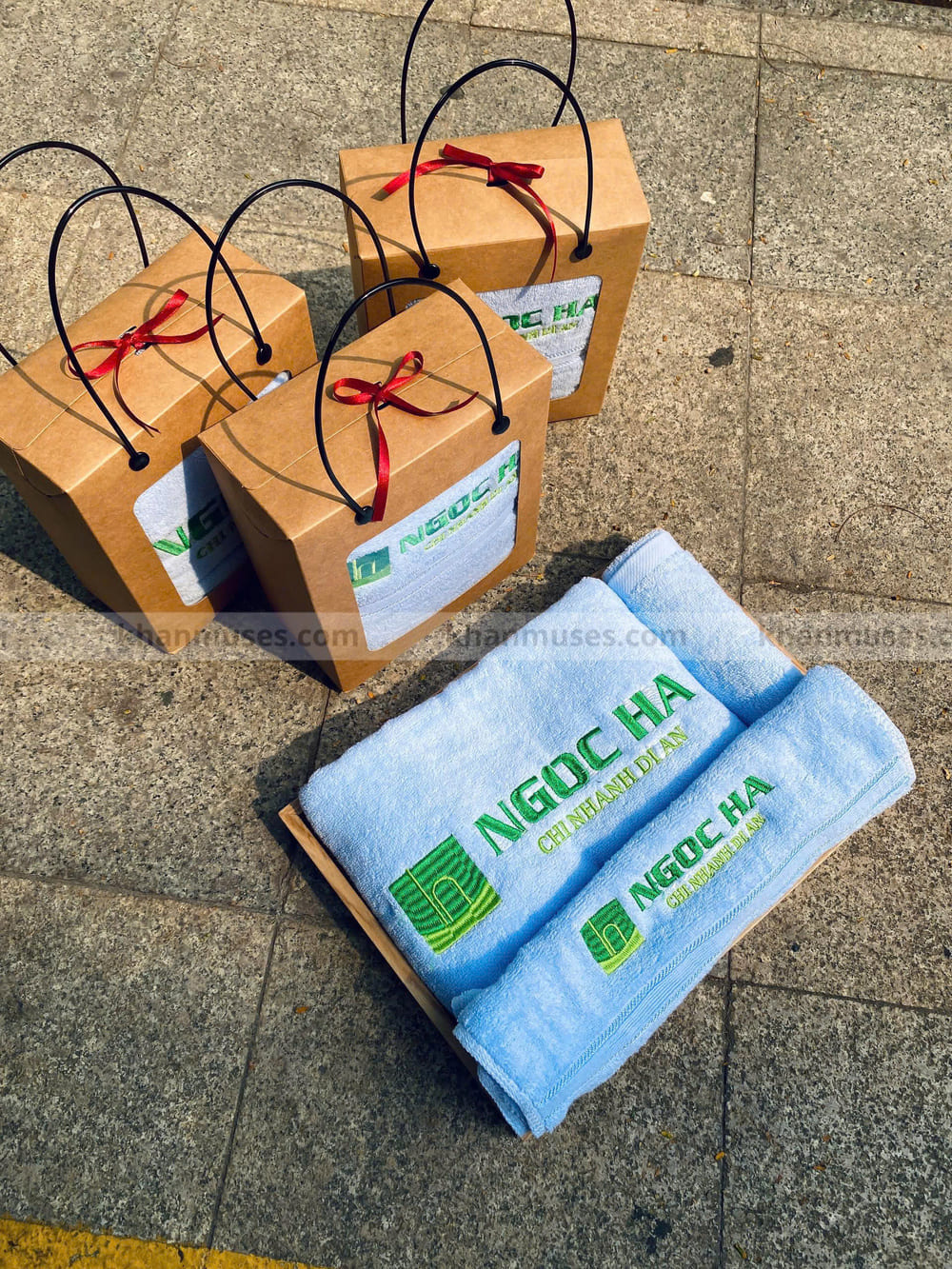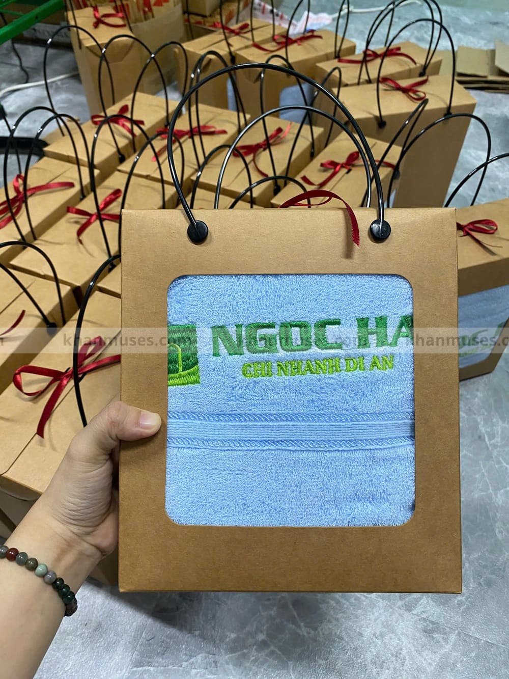 Ảnh thực tế khăn quà tặng cotton thêu logo Ngọc Hà - Chi nhánh Dĩ An