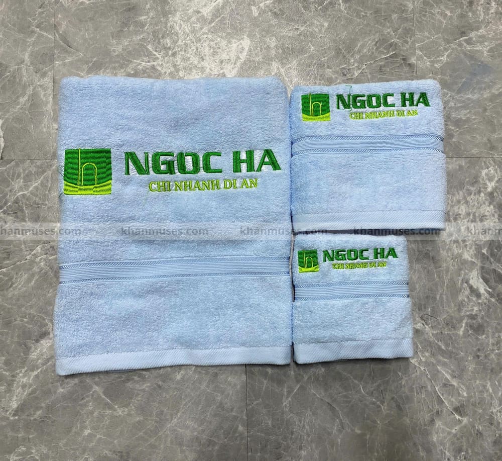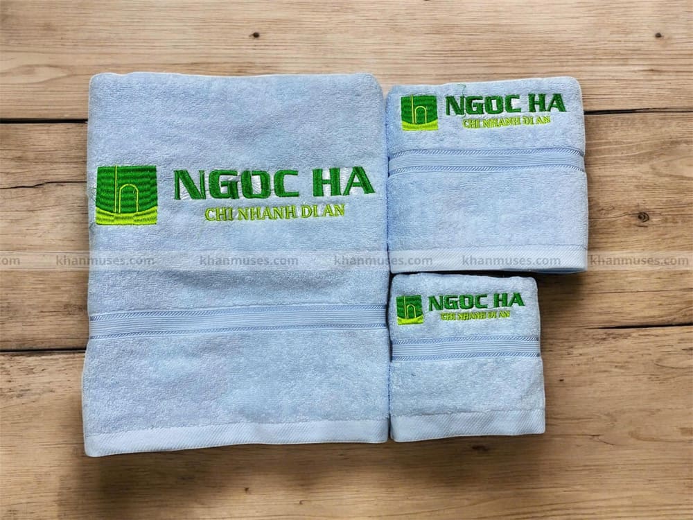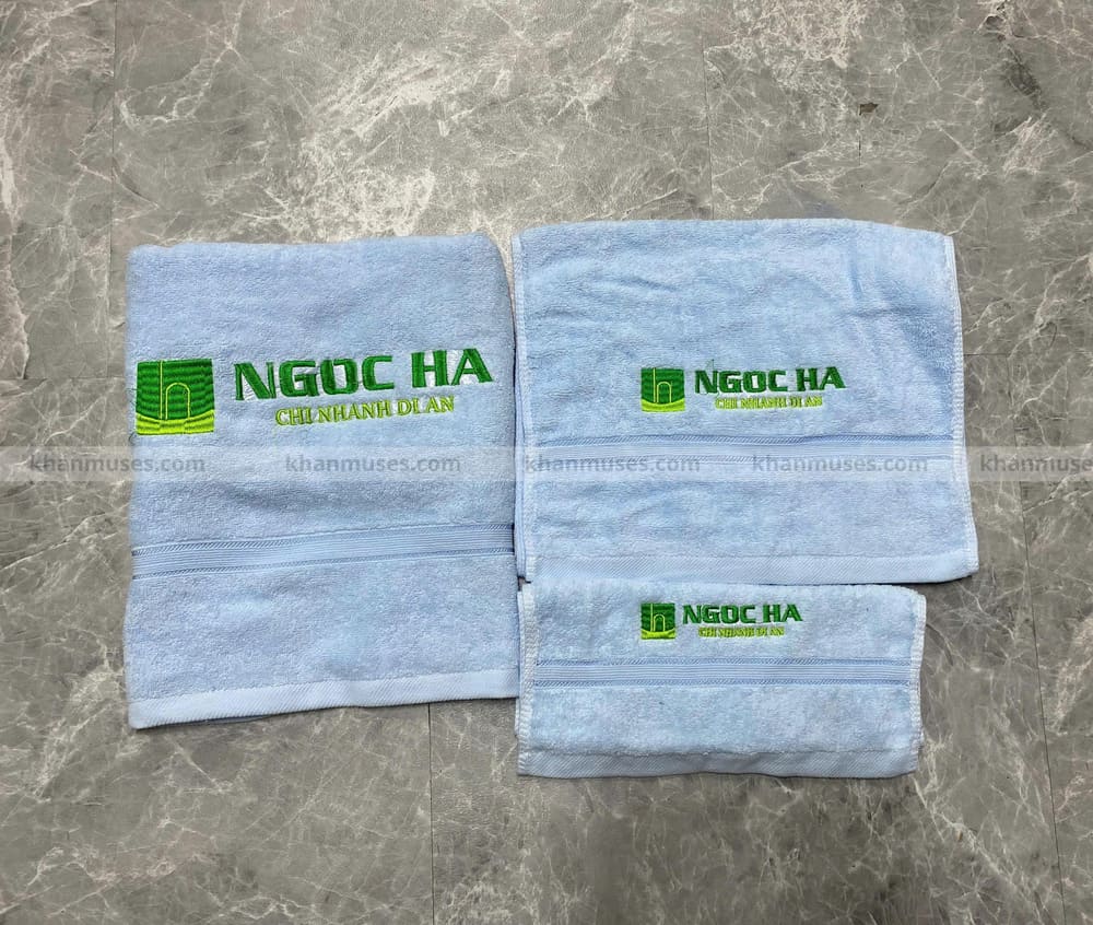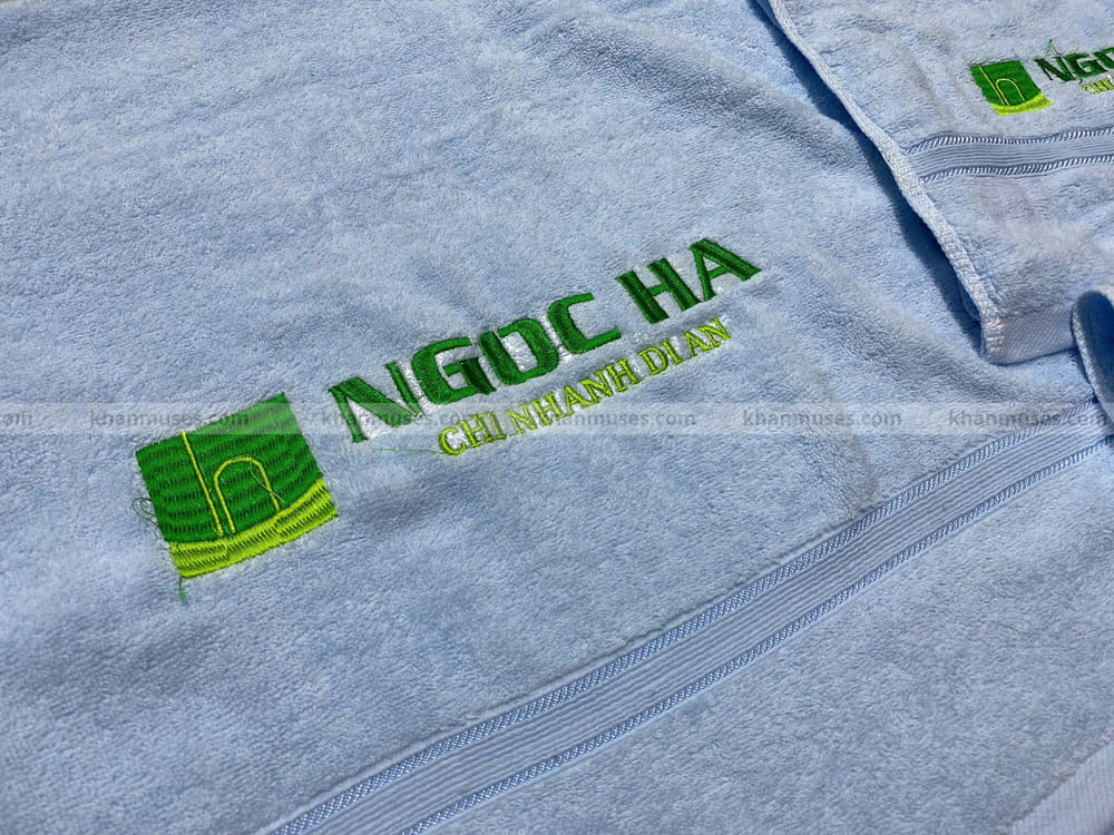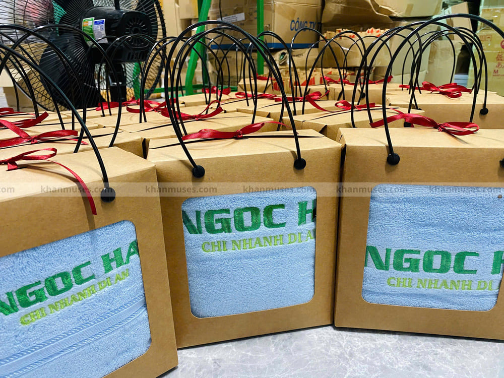Ảnh thực tế khăn quà tặng cotton thêu logo Ngọc Hà - Chi nhánh Dĩ An