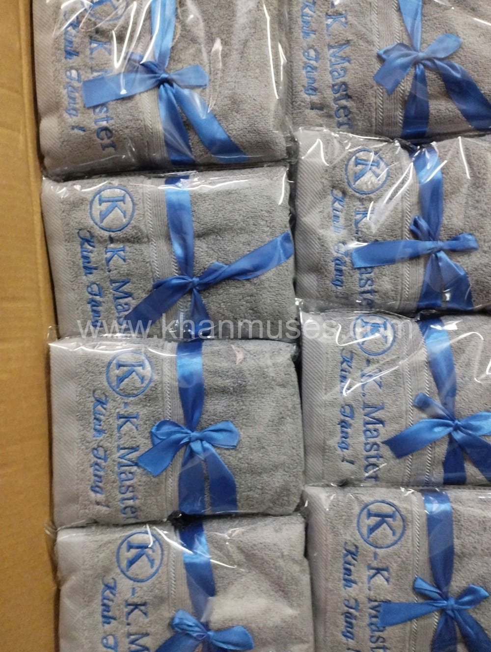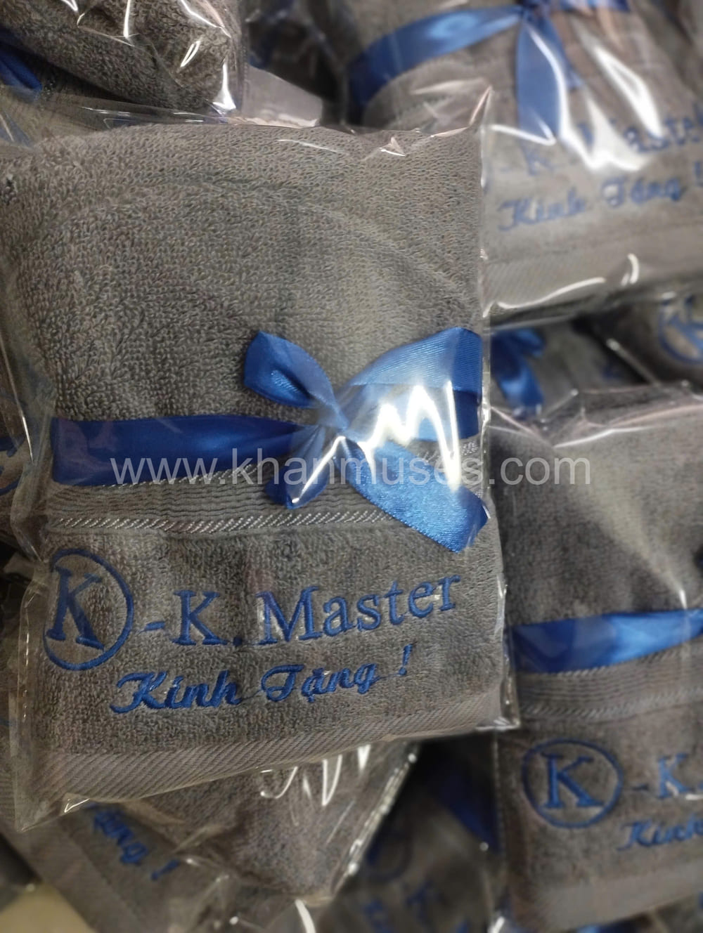 Dưới đây là hình ảnh thực tế sản phẩm khăn cotton thêu logo Tập đoàn toàn cầu K Master: