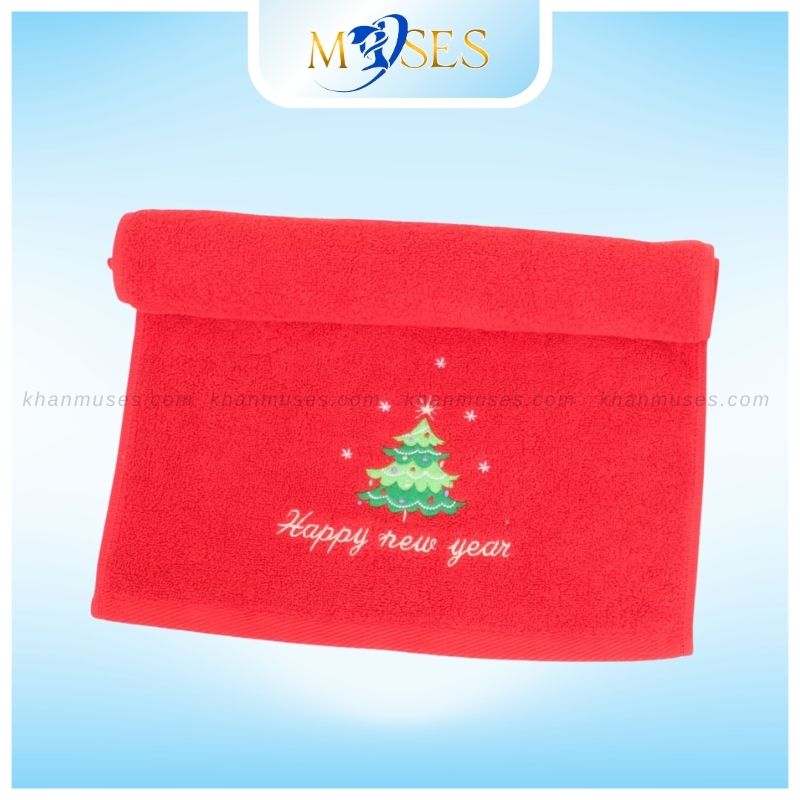 Khăn quà tặng giáng sinh màu đỏ - Thêu họa tiết