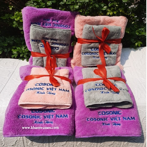 Bộ 02 khăn quà tặng Siêu mềm (mẫu 50) được công ty Cosonic đặt Muses sản xuất có thêu logo dành tặng và tri ân cho khách hàng và cán bộ công nhân viên nhân dịp thành lập công ty đầy thiết thực và ý nghĩa.