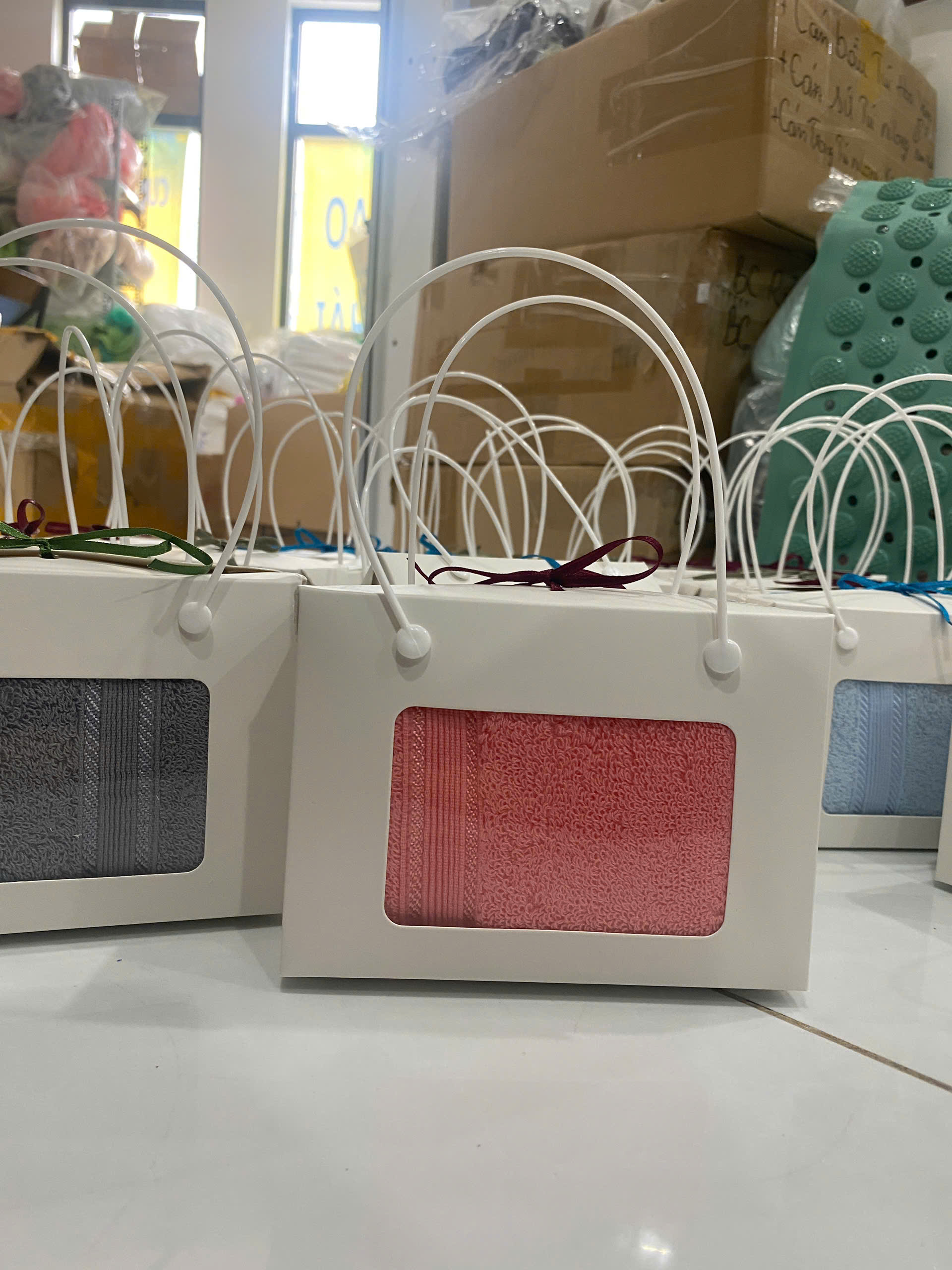 Khăn quà tặng màu HỒNG - Theo yêu cầu giá tốt