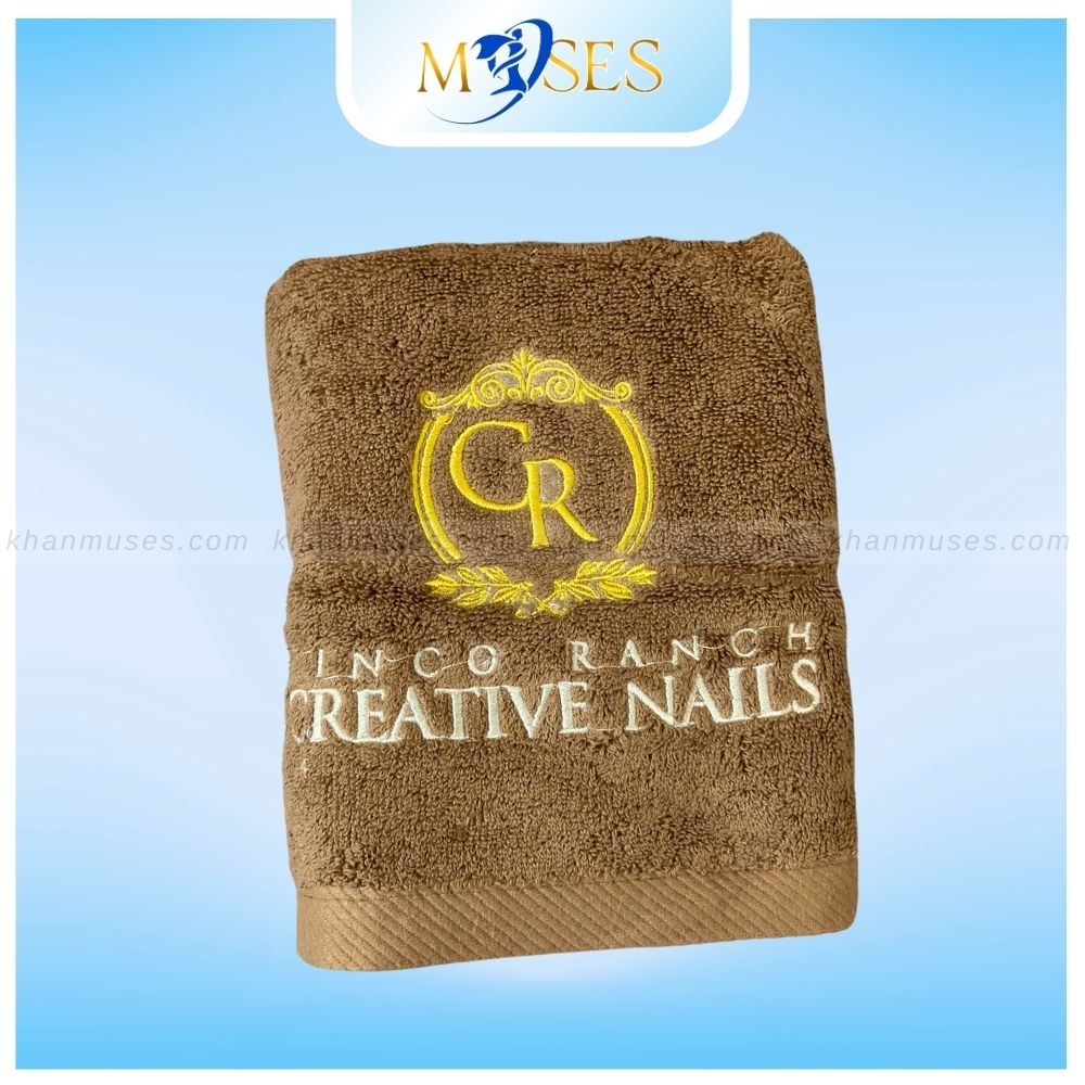 - Tên sản phẩm: Khăn quà tặng cotton thêu/dệt theo yêu cầu màu nâu