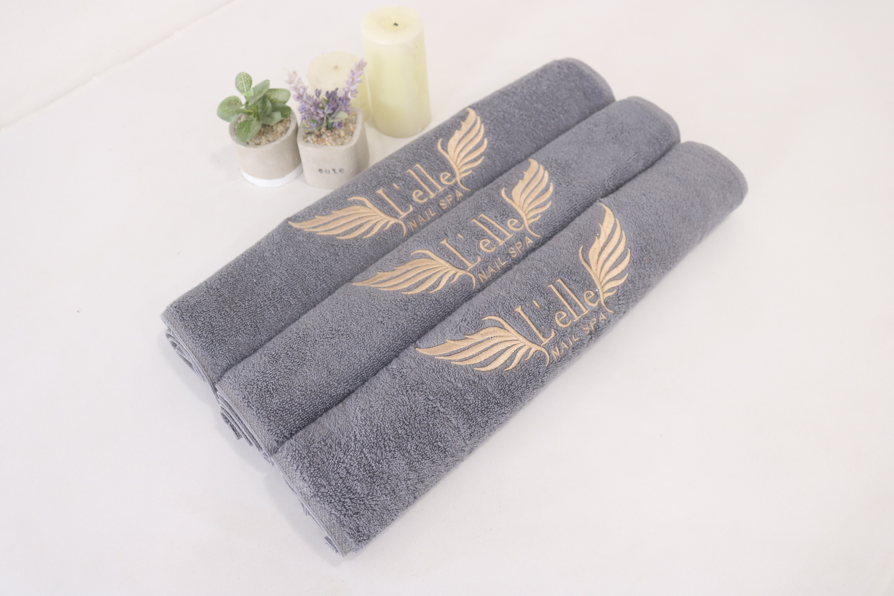 - Tên sản phẩm: Khăn quà tặng cotton thêu/dệt theo yêu cầu màu xám