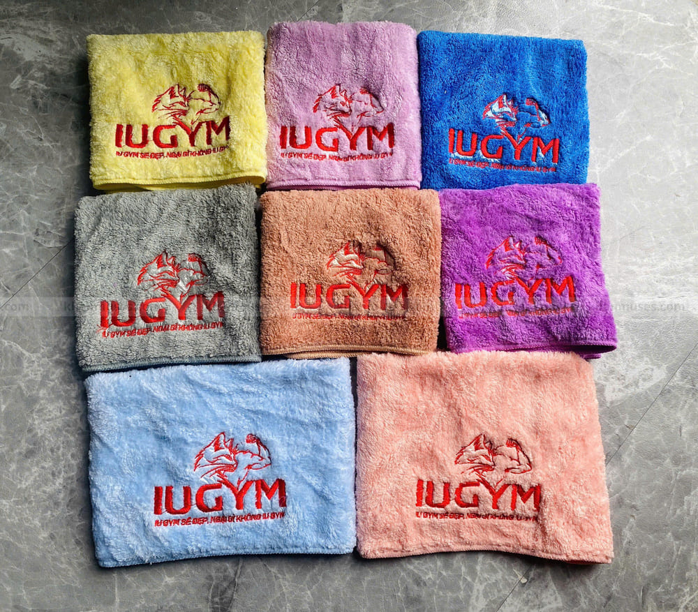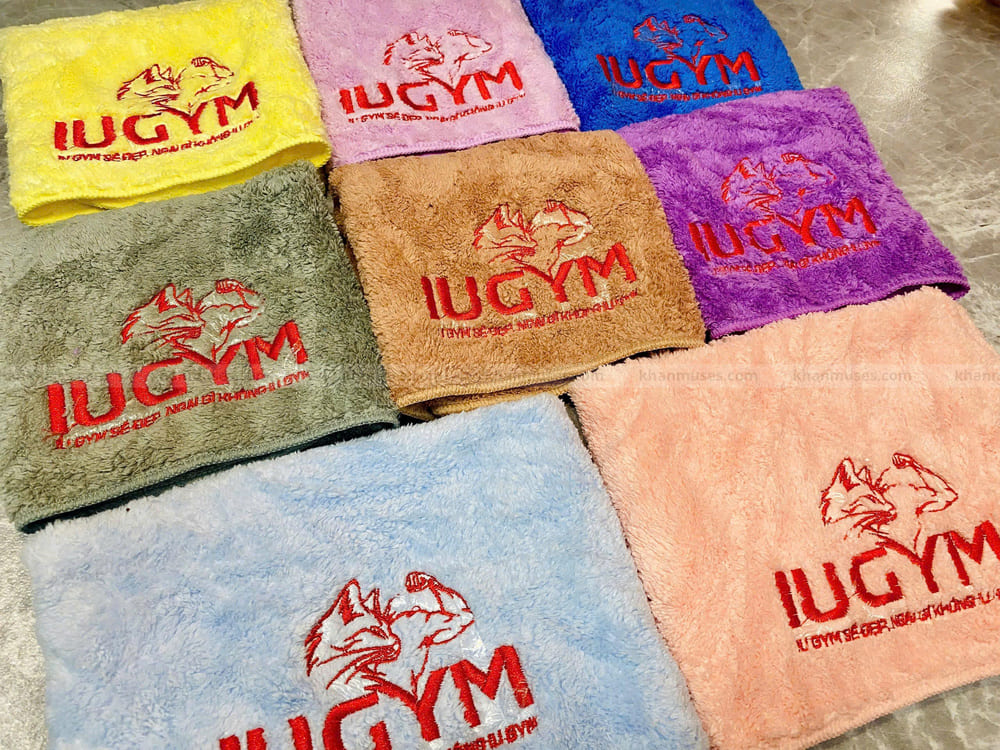 Dưới đây là hình ảnh thực tế sản phẩm khăn siêu mềm thêu logo IU GYM BÌNH DƯƠNG: