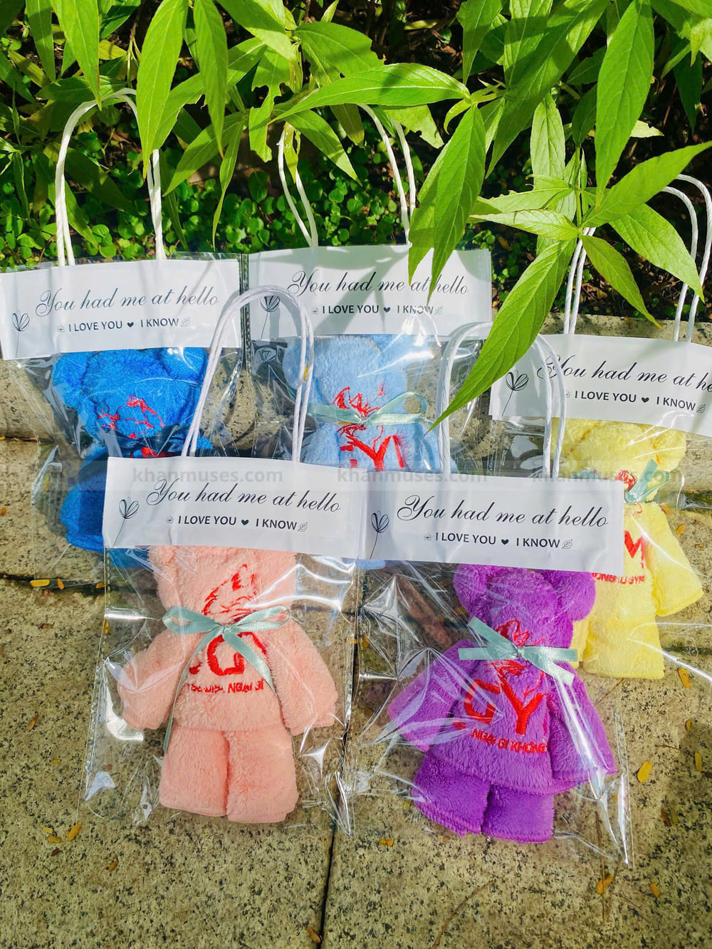 - Màu sắc khăn: Vàng, xanh dương, hồng, tím.