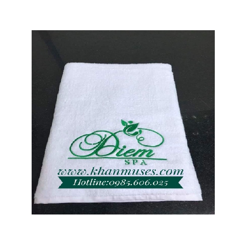 Khăn spa trắng thêu logo 1