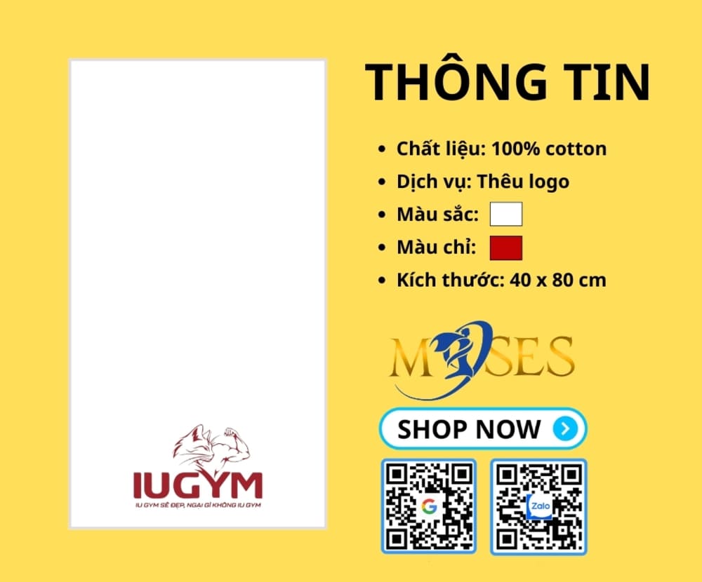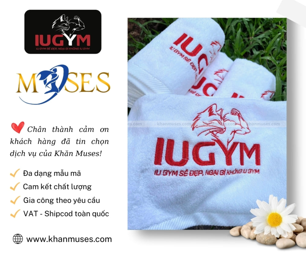 Sạch sẽ, chuyên nghiệp và chỉn chu luôn là những tiêu chí hàng đầu mà IU GYM hướng tới. Để nâng cao trải nghiệm cho hội viên trong mỗi buổi tập, IU GYM đã bắt tay cùng Muses sản xuất dòng khăn tập Cotton trắng thêu logo độc quyền.