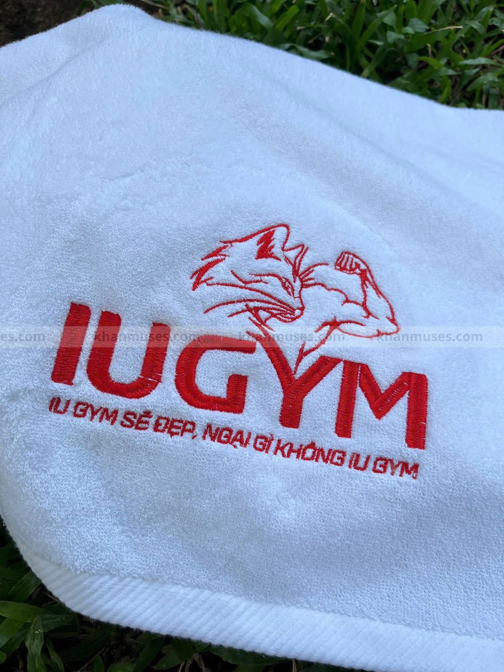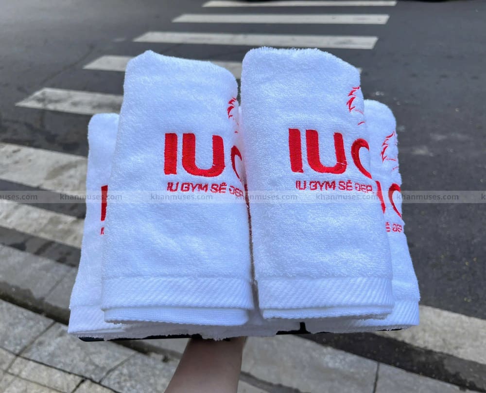 Khăn tập gym/Khăn trắng cotton thêu logo - IU GYM