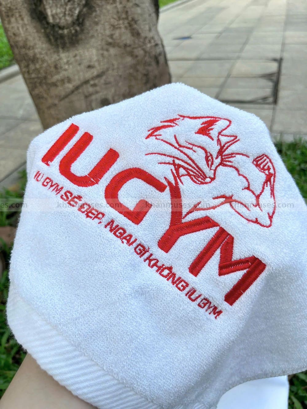 Khăn tập gym/Khăn cotton thêu logo - IU GYM BÌNH DƯƠNG