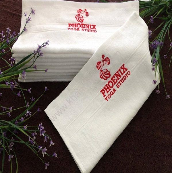 Ảnh: Khăn tập Yoga màu trắng thêu logo