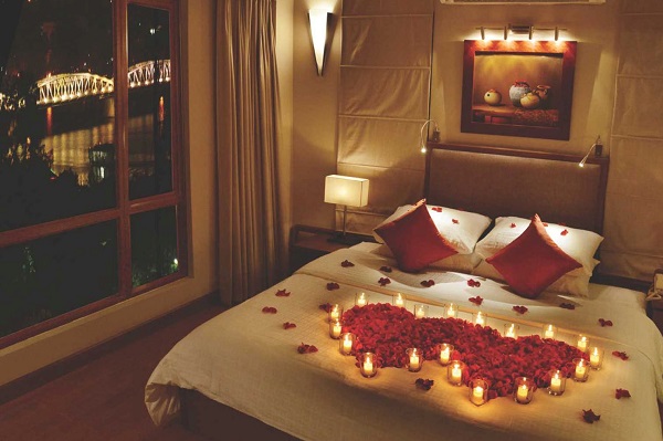 Khi cần sự lãng mạn và lung linh, bạn không thể bỏ qua vật trang trí là nến. Đặc một vài chén nến nhỏ trên giường, trên tủ đầu giường và một vài nơi khác trong phòng là cách trang trí honey moon đơn giản nhưng tuyệt vời dành cho các cặp đôi.