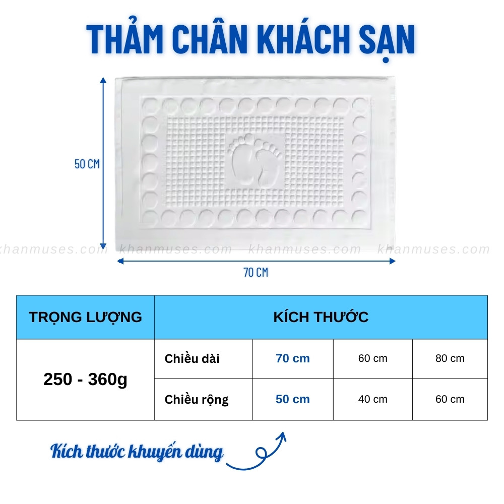 Vui lòng liên hệ Zalo Muses hoặc Hotline để được tư vấn cụ thể về kích thước, trọng lượng và thông số dệt khăn.