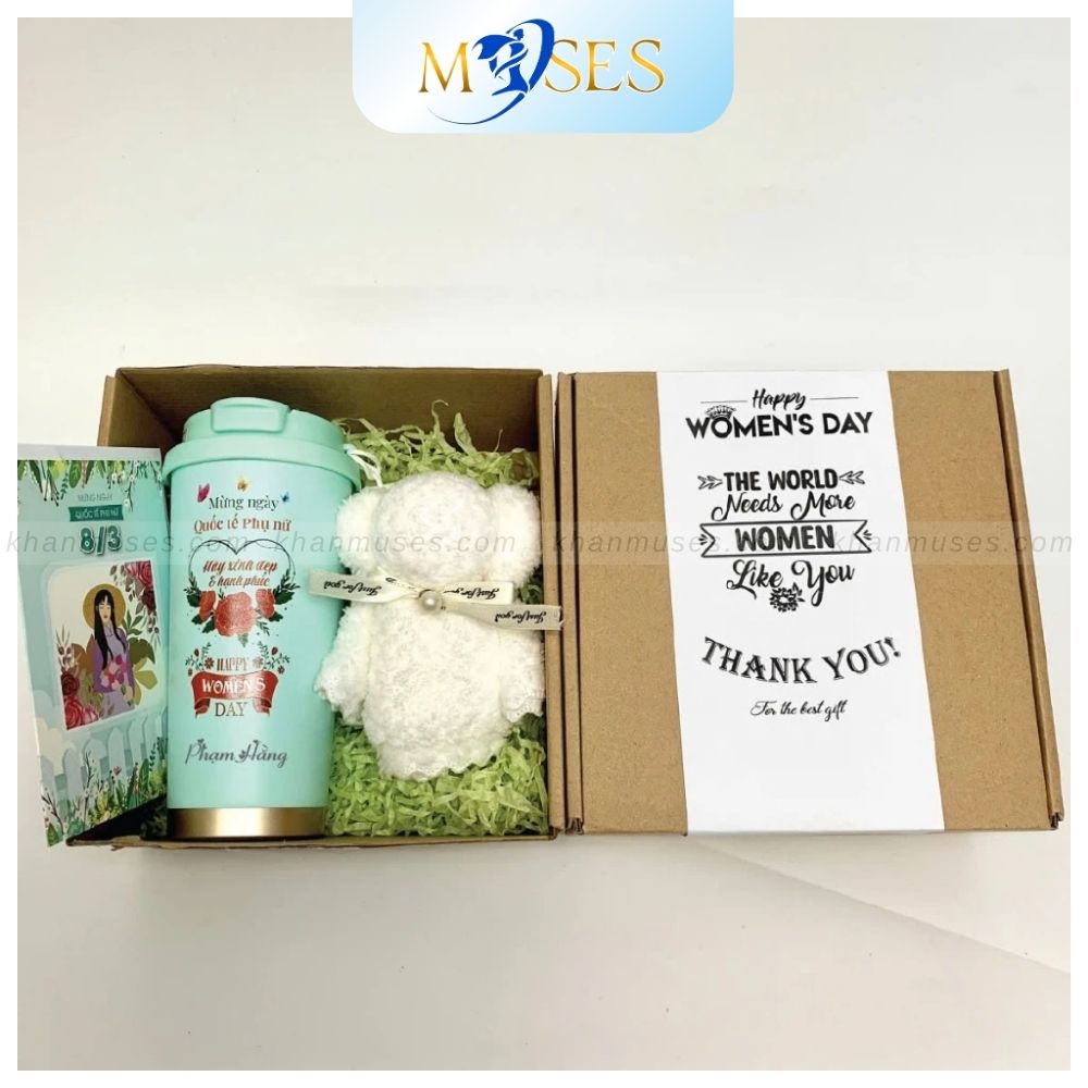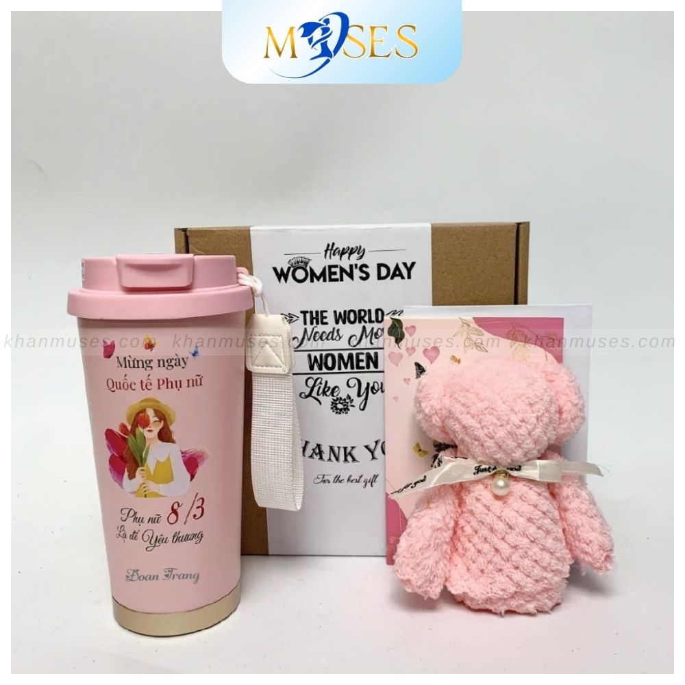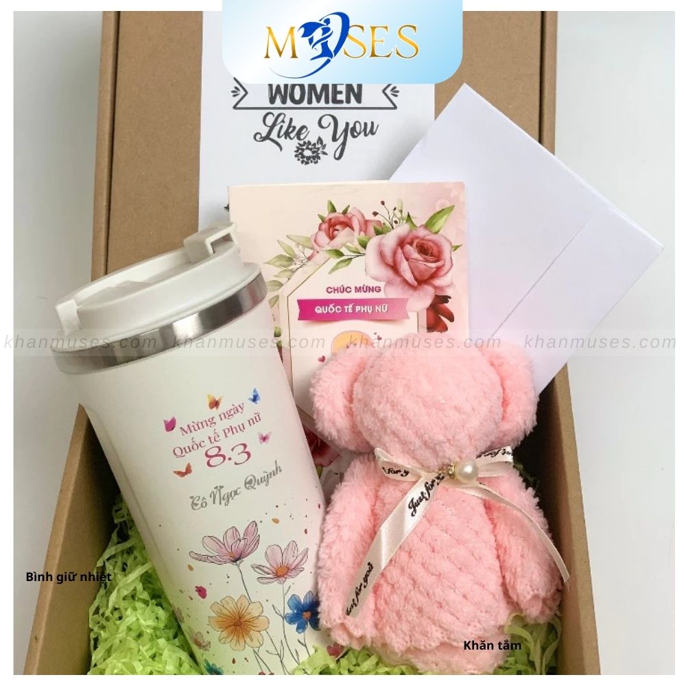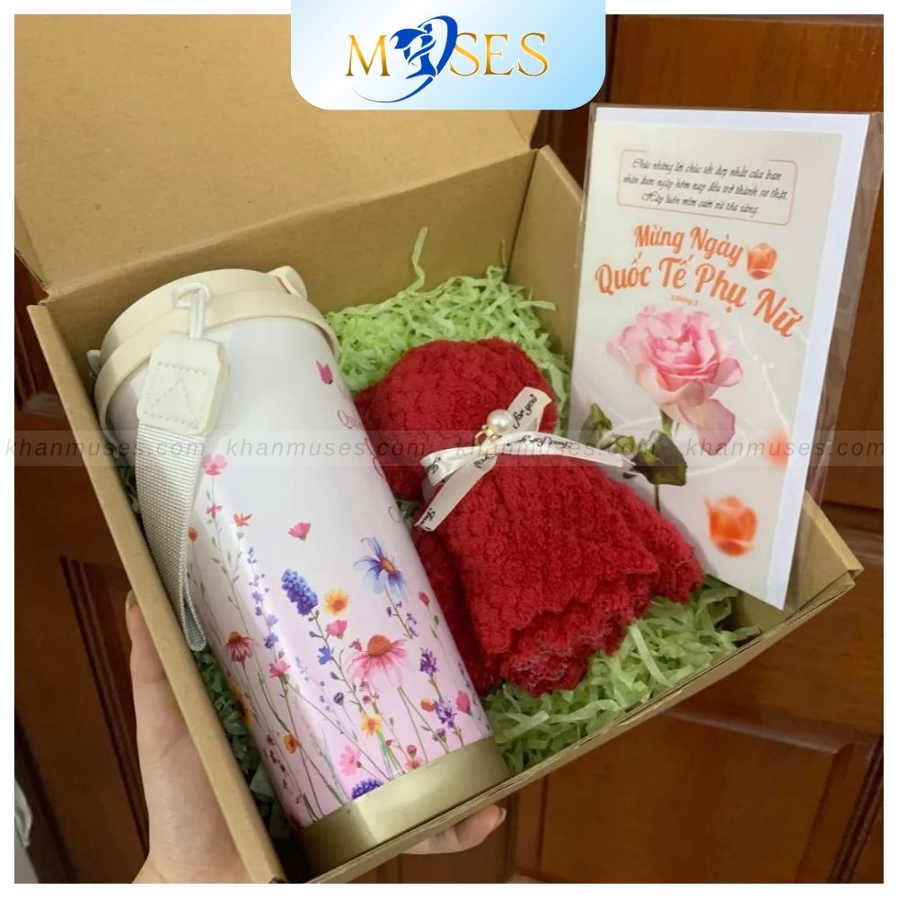 [Theo yêu cầu] Combo khăn quà tặng + bình giữ nhiệt in cao cấp