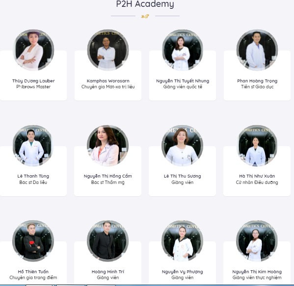 Đầu tiên phải kể đến là Học viện P2H Academy đây có thể coi là một trong số ít Những Trung tậm tại tphcm đào tạo chuyên sâu "Chuyên viên Spa cấp độ 5". Đây chính là Học viện Thẩm mỹ đạt chuẩn quốc tế đầu tiên tại Việt Nam, với nhiều các Bác sỹ là các chuyên gia hàng đầu phải kể đến như: Bác sỹ Nguyễn Thị Tuyết Nhung - Giảng viên bằng Quốc tế hay bác sỹ người nước ngoài Kampas - Chuyên gia Mát xa trị liệu