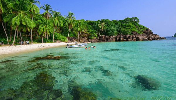 Hòn Thơm là địa điểm du lịch Phú Quốc được biết đến bởi những bãi cát trắng trải dài, những rặng sạn hô tuyệt đẹp cùng hàng dừa nghiêng bóng và làn nước trong xanh có thể nhìn thấy được những đàn cá đang tung tăng bơi lội dưới nước. Đến đây, bạn có thể tham gia các hoạt đông khác như: câu cá, câu mực đêm, lặn ngắm san hô, bắt nhum, tham gia trekking, mua ngọc trai,… Cùng với vẻ đẹp của mình, Hòn Thơm còn được gọi với danh xưng mỹ miều “viên ngọc quyến rũ chết người” của Phú Quốc.